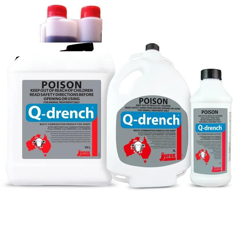 Jurox Q-drench is a short acting, 4 way combination sheep drench. Q-drench contains 4 actives with 4 different modes of action at 4 fully effective doses.