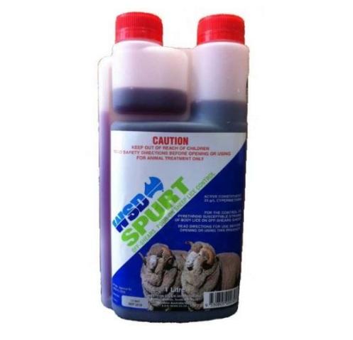Applied correctly SPURT puts a full strength dose of lousicide on every sheep and works well even under such adverse conditions as wet weather or wet sheep. A scourable blue marker dye is included in the product for specific identification of treated